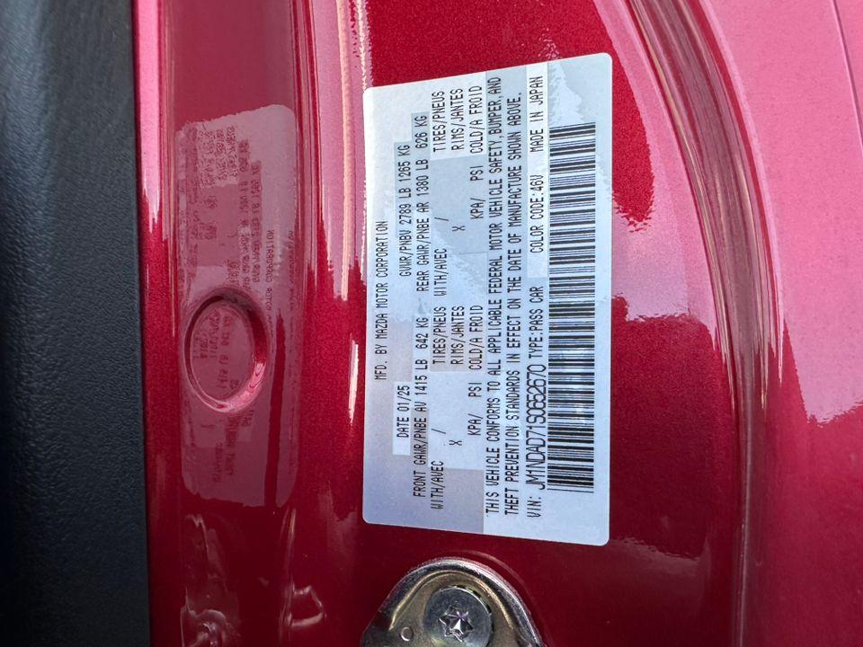 2025 Mazda MX-5 MiataThis vehicle has been equipped with our OPTIONAL dealer-installed Total Confidence Plus Package ($2,995), which includes: Loaner for Life, Digital Fraud Protection, Anti-Theft Vin Marking, Collision Loyalty Credit, Stolen Vehicle Assistance, Paint and Fabric Protection, 1st Oil Change, A/C Refresh Service, Rain Repellent, 7-Day Exchange (used only),Headlight Protection, 2nd Key & Remote, Full Tank of Gas, Nitrogen Tire Service, Door Edge & Cup Guards, Roadside Assistance Plan, $500 Coupon, Additional 1 Month/1,000 Mile Warranty (non-CPO used vehicles), and a Customer Welcome Kit with Customer Mobile App . This package is optional, not required by law, and not included in the advertised price. It may be purchased separately at the time of sale.
