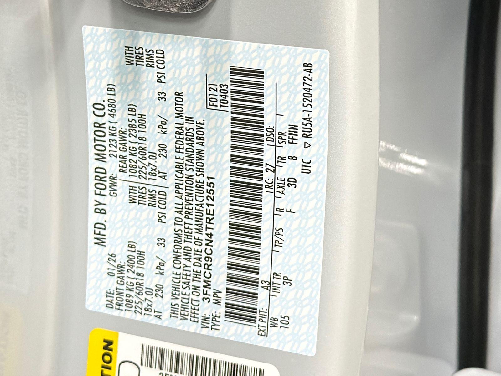 VIN #:  3FMCR9CN4TRE12551
