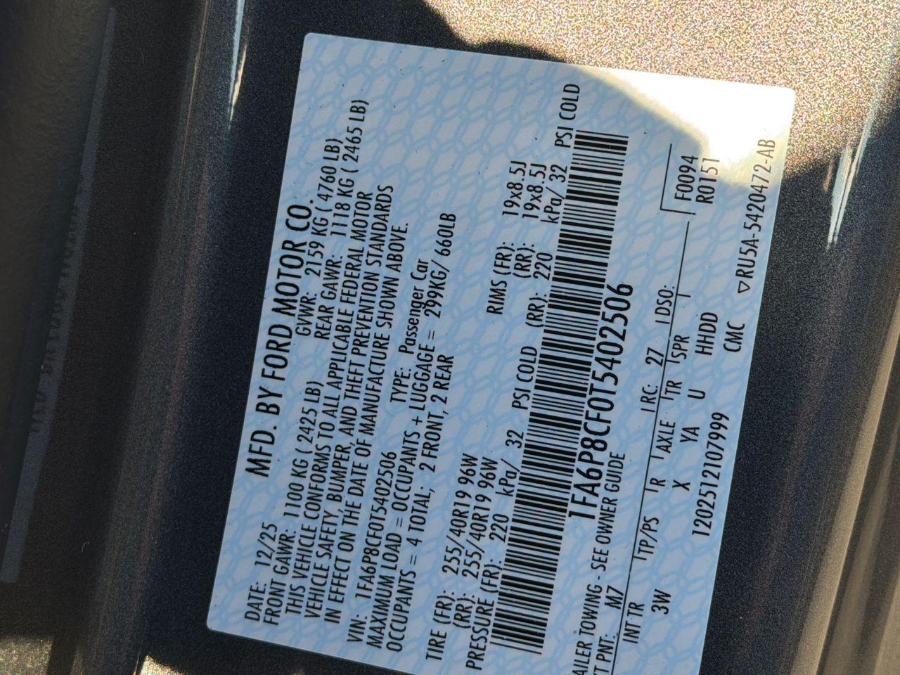 VIN #: 1FA6P8CF0T5402506