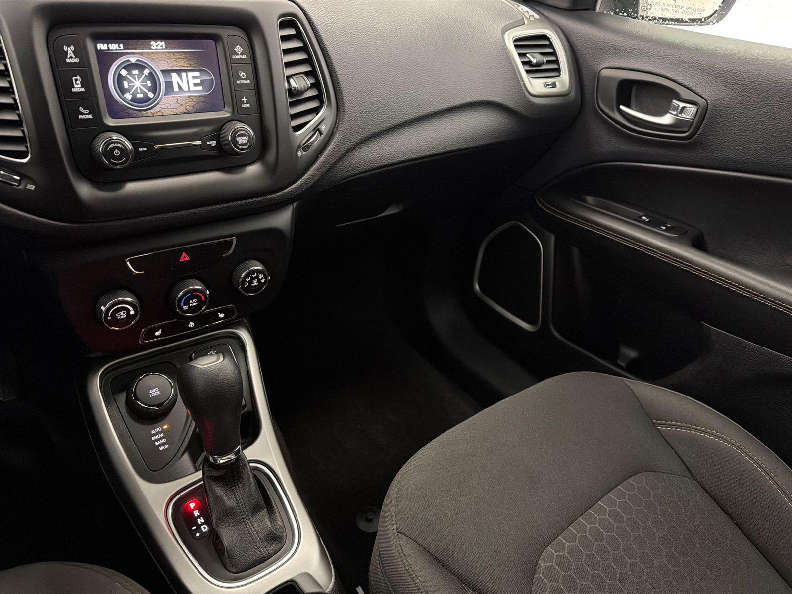 SPORT APPEARANCE GROUP, COLD WEATHER GROUP, GRAPHICS PACKAGE. Compass Sport, 4D Sport Utility, 2.4L I4, 9-Speed Automatic, 4WD, Diamond Black Crystal Pearlcoat, Black w/Cloth Low-Back Bucket Seats, All-Season Floor Mats, Black Side Roof Rails, Cold Weather Group, Deep Tint Sunscreen Glass, Heated Front Seats, Heated Steering Wheel, Leather Wrapped Steering Wheel, MOPAR Bodyside Graphic, MOPAR Graphics Package, MOPAR Hood Graphic, Quick Order Package 27A, Reversible Carpet/Vinyl Cargo Mat, Sport Appearance Plus, Wheels: 16" x 6.5" Silver Painted Aluminum, Windshield Wiper De-Icer.This vehicle has been equipped with our OPTIONAL dealer-installed Total Confidence Plus Package ($2,995), which includes: Loaner for Life, Digital Fraud Protection, Anti-Theft Vin Marking, Collision Loyalty Credit, Stolen Vehicle Assistance, Paint and Fabric Protection, 1st Oil Change, A/C Refresh Service, Rain Repellent, 7-Day Exchange (used only),Headlight Protection, 2nd Key & Remote, Full Tank of Gas, Nitrogen Tire Service, Door Edge & Cup Guards, Roadside Assistance Plan, $500 Coupon, Additional 1 Month/1,000 Mile Warranty (non-CPO used vehicles), and a Customer Welcome Kit with Customer Mobile App . This package is optional, not required by law, and not included in the advertised price. It may be purchased separately at the time of sale.