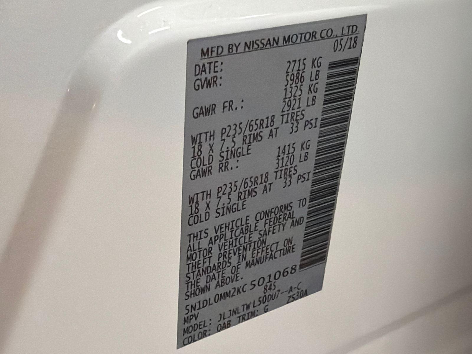 VIN #: 5N1DL0MM2KC501068